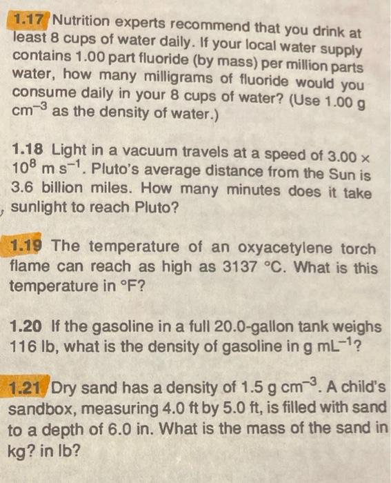 Solved 1 17 Nutrition Experts Recommend That You Drink At Chegg Com