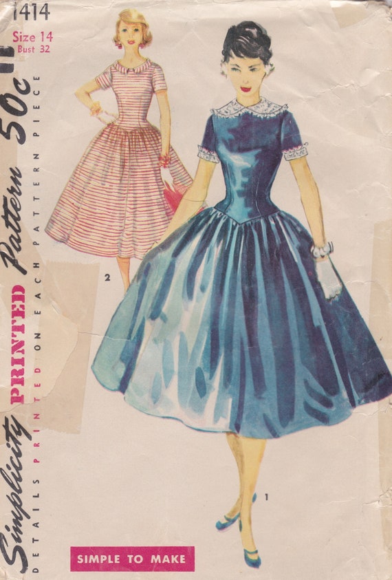 Simplicity 1414 Vintage 1950s Sewing Pattern Dress Size Etsy De